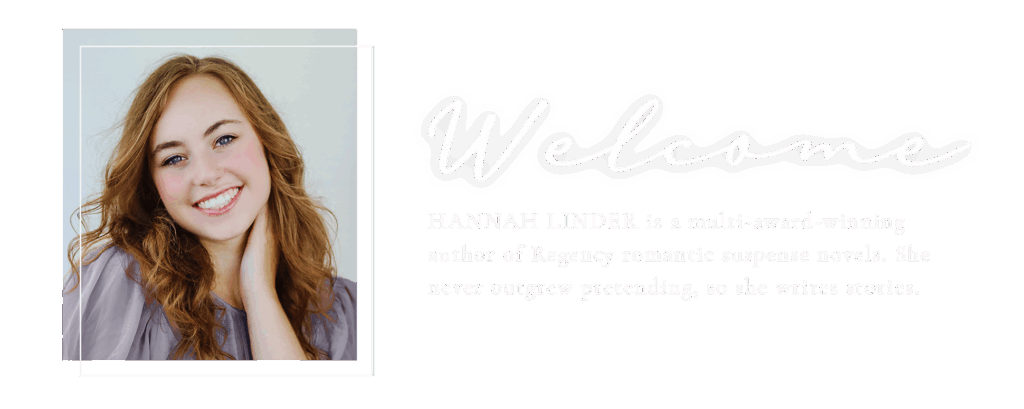 HANNAH LINDER resides in the beautiful mountains of central West Virginia. Represented by Cynthia Ruchti with Books & Such Literary Management, she writes Regency romantic suspense novels filled with passion, secrets, and danger. She is a four-time Selah Award winner, a 2024 Carol Award finalist, and a member of American Christian Fiction Writers (ACFW).